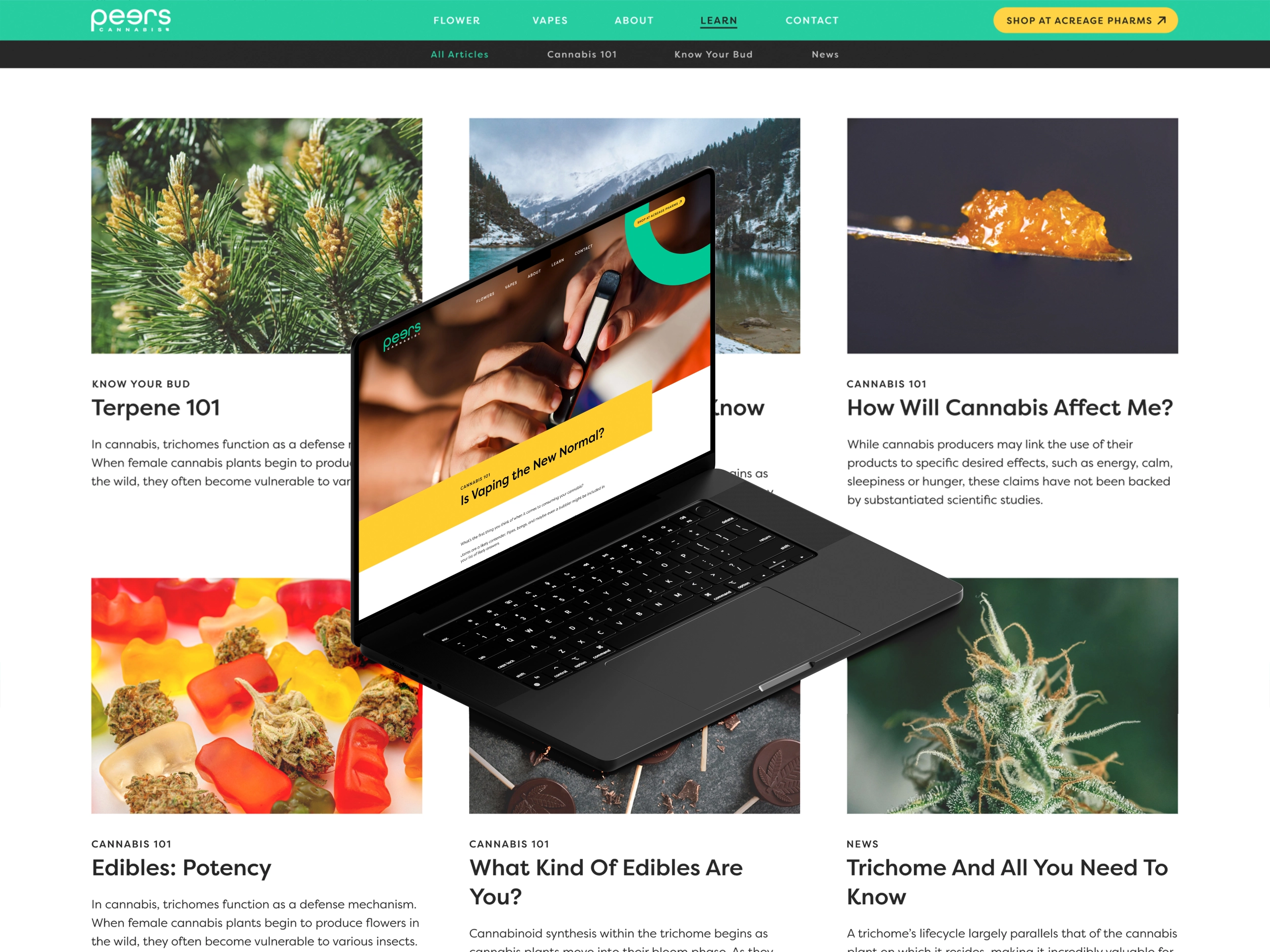 To create an e-commerce website for Peers Cannabis that showcases its unique branding and delivers compelling storytelling.